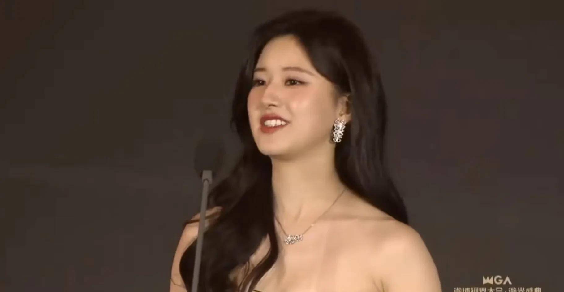 发表领奖感言时,镜头一怼到赵露思脸上,可能是角度的原因,这肉乎乎的小脸和身材似乎有点不太匹配,但还是非常可爱。