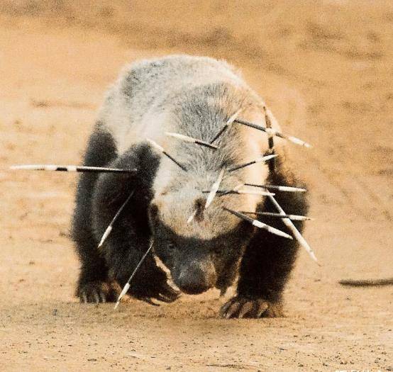 我们平时常说的平头哥,其实就是蜜獾。虽然这种动物的个头不大,但是性格却非常的凶狠好斗,简直可以说是当地一霸。一看下面这只平头哥,你就知道它刚刚打过架,而且打架对象还是同样凶猛的豪猪。