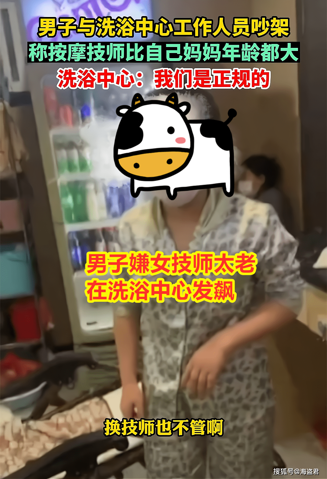 原标题:男子在洗浴中心发飙,换了好几个女技师都嫌太老:比我妈年纪都大