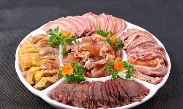 将水烧至沸腾后把切好的肉放入锅内,用大火煮40分钟,待用刀切后肉块中无血即可,再将煮好的肉块切成每块50克左右的小肉块,肉片摆放整齐。
