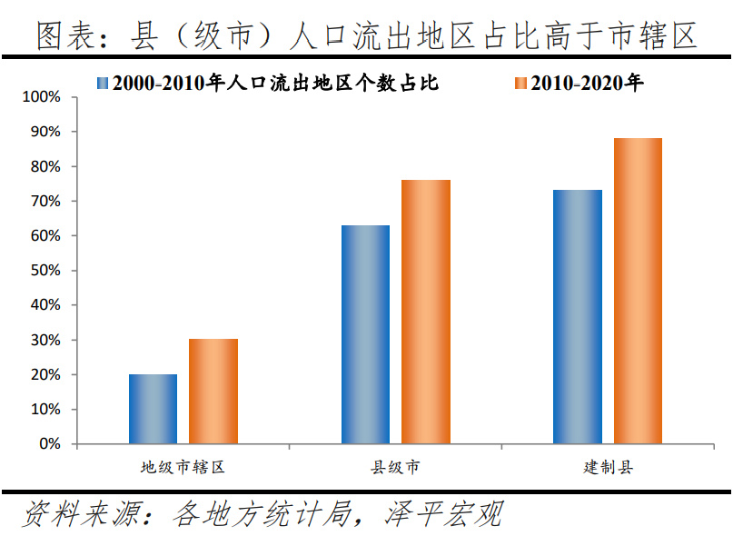 房价的高低,与经济条件、文化氛围、产业结构等众多因素有关,难以一概而论。 但构成这个复杂链条的基石则是明确的,那就是——人口。有人的地方才会兴旺,这是楼市的底层逻辑。 围绕着县城楼市产生种种现象背后,潜藏着中国县城正在面临的一场深远的“人口危机”。 过去几年,各个大城市都一改往日的高傲姿态,在人才政策上颇为大方,高补贴、放松落户条件等政策层出不穷,原因很简单,就是人才不够了,吸引人才流入,特别是年轻人的流入,成为各个城市维持未来竞争力和发展态势的基础。 大城市况且如此,小县城就更不必说,在我国的县城里,人口流失的情况正在普遍发生,人们都在往大城市和中心城市迁移。 根据任泽平团队2022年发布的一项人口流动的研究显示,我国的人口流动的总趋势仍然是向中心城市聚集,在2010至2020年这10年间,县级市的人口流出地区个数占比从63%增至76%,建制县从73%增至88%,全国共有286个县级市与1299个建制县的人口正在流出,是各个行政区划中上升幅度最为显著的类别。 县(级市)人口流出地区占比高于市辖区 反映在县城生活中,则是年轻人都不见了。 秦勇对此感受颇深,他说,“浠水哪还有什么年轻人,大部分都跑出去了”。 浠水的工作机会不多、发展前景一般,他认识的年轻人都不愿意在浠水发展。恋家一些的,就在武汉上班生活;远一些的,跑到北上广深的都有。秦勇自己也希望自己的孩子将来能到大城市发展。 溧阳的情况也类似,刘平很少看到外地的年轻人到溧阳发展,而像他这样留在溧阳的本地年轻人也不多了。 尽管溧阳近些年引进了上汽、宁德时代等知名企业开工建厂,稍稍改变了年轻人不多的局面,但是这些新人能否转化为购房生力军,仍待观察。 值得一提的是,交通条件的改善,在一定程度上也加速了县城年轻人流失的进程。 2022年4月,浠水县的高铁站建成通车,浠水到省会城市武汉的时间从原来的2小时缩短到40分钟,同时浠水还开通了直达深圳的高铁班次,通勤时间从原来的14小时缩短到了7小时内。 2022年4月22日,湖北省黄冈,黄黄铁路正式开通运营,首发所使用的列车抵达浠水南站 而溧阳则早已深入融合在江南片区密集的交通线路之中,到哪去都很方便。 颇具矛盾的两种趋势在同步上演。 一方面,交通的便利加快了县城与更广阔的空间的联系效率,有利于要素流通。 另一方面,这也加大了人们向更具发展前景的大城市集聚的进程。 县城的发展需要中心城市,县城的房价变化与它和中心城市的关系密不可分。肖文晓对盐财经表示,扣除近年来不断上升的地价成本、建筑成本和开发成本,一般县城房价的毛利空间相当有限,“只有位于热门都市圈周边或者具有产业和人口集聚效应的县城房价,才能拥有好的溢价空间”。 也就是说,县城的房价依然依托于中心城市的辐射效应,那些有效链接到大城市产业结构、能够承接都市圈的产业转移分工或需求外溢的县城,才有能力支撑当地的房价。 但是,这种深度融合,往往也意味着中心城市能够更有力地攫取县城的资源,年轻人的出走,就是这种虹吸效应的一个切片。 目前看来,这场中心城市与县城之间的竞合游戏,仍是中心城市占据着优势。这种态势,将对县城房价产生长久而深远的影响。