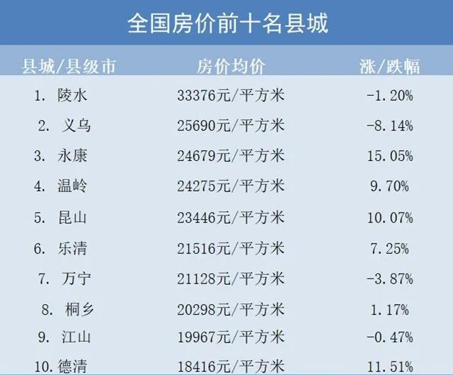 从价格表现上来看,在房住不炒的政策框架以及房地产行业自身波动等因素的作用下,过去一两年,各个地区的县城房价均有不同程度的下跌,这与全国房地产行业的形势基本贴合。 从房地产行业的周期角度来说,克而瑞广佛地区首席分析师肖文晓对盐财经记者分析道,县域房地产市场由此前“量升价涨”的高潮期步入了“量缩价跌”的低潮期,整体表现为库存积压、需求疲弱。 不过,县城内部也有分化。在普遍房价下跌的过程中,一些县城的房价仍然逆势上扬。 根据中国房价行情网的数据显示,中国房价排名前10的县城中,有超过半数的县城房价高于去年。 截至2022年6月,房价破2万元/平的县城数量达到8个(数据来源:中国房价行情网 整理:第一财经) 甚至像温岭、桐乡、乐清等县城的房价一度突破了2万,这些县城大部分处于东南沿海地区。 但在更广阔的腹地区域,可以说,此轮县城房地产周期的发展高潮已过。 一些在县城生活的普通人,就明显地感受到了这种变化。 刘平是一名土生土长的溧阳人,大学毕业时,他回到溧阳的一家建筑公司上班。 2021年结婚后,他和妻子搬进了此前购置的一套新房。作为兼具房地产业内人士与购房者双重身份的刘平,对溧阳的楼市有着自己的观察。 溧阳,在全国县城中的房价排名靠前,属于剩下6%均价过万的县级市。刘平对盐财经记者表示,2017年他在家人的支持下,以大约8000元/平米的价格购置了一套复式公寓。 “当时买下来,就是为了日后改善用的,最后就当了婚房。”如今,刘平的这套婚房,价格已经涨到了12000元/平米左右。 身为业内从业人员,他对溧阳的这波涨价潮印象深刻。 在2017年至2018年间,溧阳涌进了一批全国性的房地产企业,这些企业在溧阳拍地、建楼,刺激了溧阳房价大涨,“2018年之后,溧阳的房价就开始涨起来了,很快就破万”,刘平表示。 房地产企业涌进县城,刺激了当地的房价 过去两年,在一些大城市的房地产市场中,房企“国进民退”的现象十分明显,最突出的现象是在土地拍卖上,民企拿地明显少了很多,国有背景的城投公司拿地多了。 房地产行业进入了万科董事会主席郁亮所说的“活下去”为主题的阶段,这股寒气同样传导到了县城楼市。许多县级房地产企业倒闭、破产,乃至老板跑路,楼盘闲置。房地产行业的“国进民退”现象,也在县城上演着。 刘平表示,这两年,当初进来的那些大房企很多都退出溧阳了,具有国有背景的城投公司成为溧阳楼市的主要承建商。溧阳的房价也从最高位,开始缓慢下跌。