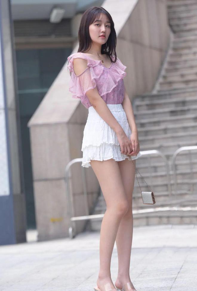 白色百褶裙堪称锦上添花,女生的淑女气息得到大幅度提升,白色和粉色相辅相成,带来了唯美浪漫的视觉美感,裙摆采用了双层设计,层次感和立体感都很理想,把衣摆扎进裙子里,纤细的腰身被展现了出来,婀娜多姿优雅又清新让人不由得不点赞。