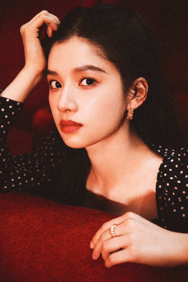 张婧仪新照五官精致 穿波点长裙变复古美人