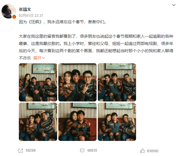 大家在我这里的留言我都看到了,很多朋友也说起这个春节假期和家人一起追剧的各种趣事,这是我最欣慰的。我上小学时,曾经和父母、姐姐一起追过两部电视剧,很多年后的今天,每次看到这两个剧的某个画面,我都还能想起当时那个小小的我和家人聊得不亦乐乎的画面,它是如此清晰、如此温暖。在未来,聊起往事,聊起2023年,希望有人能记得在2023年的春节,有过一部叫作《狂飙》的电视剧……作为影视工作者,我们会深感荣幸、自豪。