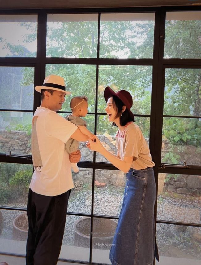 另一张全家福中,李亚鹏身穿T恤,戴着圆毡帽,在90后老婆的影响下,李亚鹏也变得越发时尚。海哈金喜则身着T恤和牛仔长裙,产后迅速恢复好身材,她牵着女儿的小手,笑容让人如沐春风,隔着屏幕都觉得这个家好温馨。