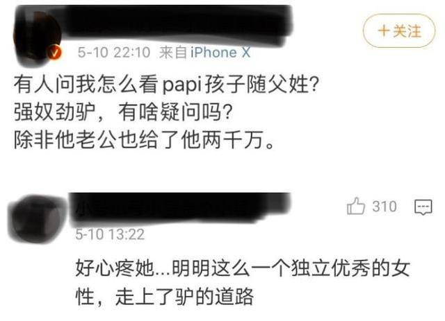 第二波,papi酱生子之后,孩子随了父姓,作为新时代的女性,作为网红届搞笑、敢说的女性代表,papi酱让部分人失望了,微博被骂走上驴的道路。孩子随谁的姓,本就是人家两口子的事,而且随父姓,本就天经地义的事情,居然还会被骂,这才是欲加之罪。