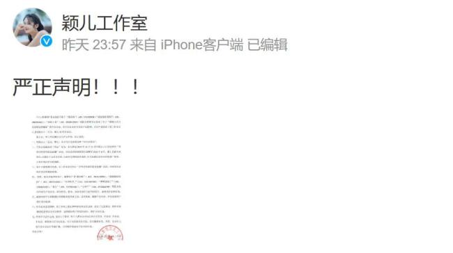 颖儿也转发声明:“网络并非法外之地,谣言止于智者!”