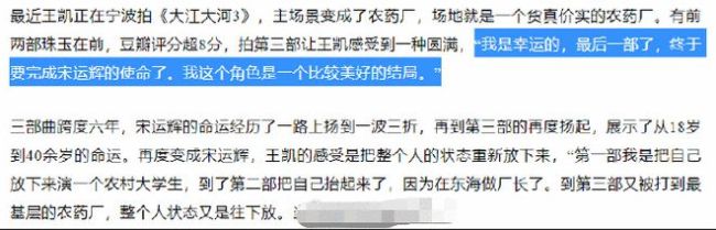 王凯谈《大江大河3》 还表示喜欢宋慧乔新剧角色