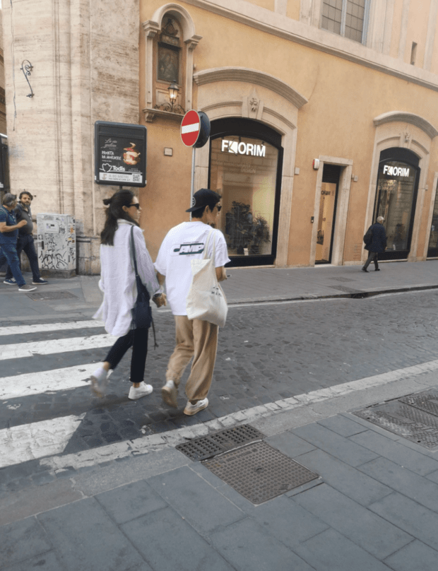宋仲基与妻子在罗马被偶遇 二人牵手逛街十分恩爱