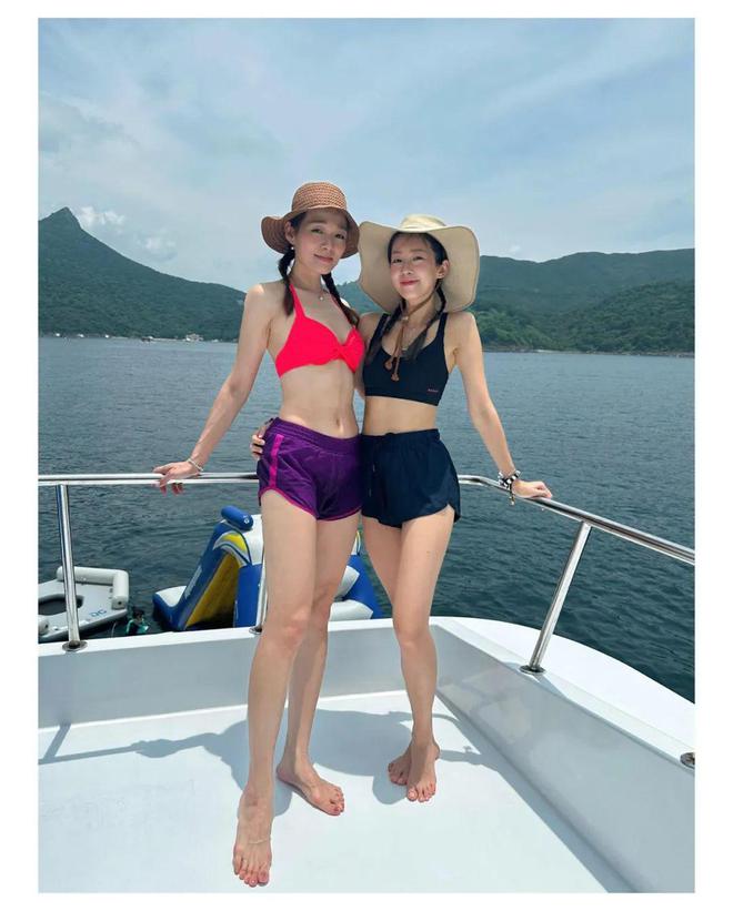 TVB女星吕慧仪(长脚蟹)一向身材好,近日她带上儿子同朋友出海,久违的以泳衣上阵!
