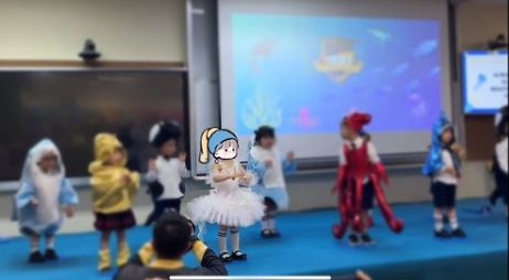 张馨月亦有将片段放在社交平台,视频中穿着校服的Luna跟同学们排排坐拍合照,之后还参与了多个表演环节,既打鼓又跳舞,虽然张馨月用公仔头遮了Luna的样子,但从片段中看得出Luna相当开朗、活泼,穿起芭蕾舞裙的她动作多多,相当可爱,难怪台下的林峯激动,更与其他家长一样举高手机为女儿拍照留念。