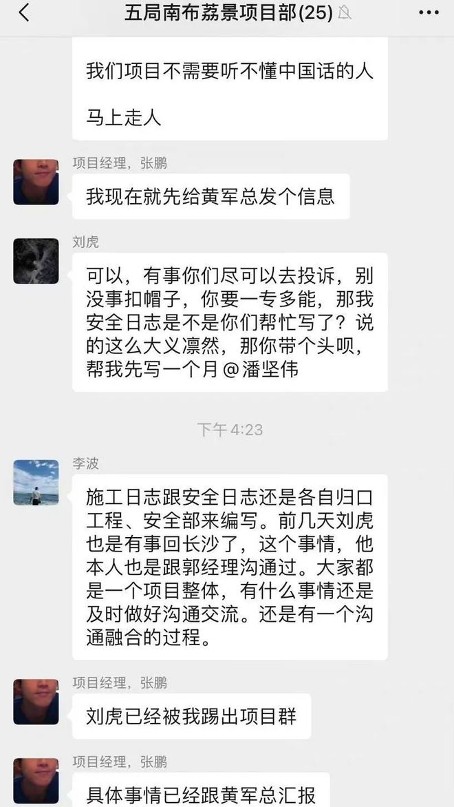 可突然,张经理就在群里爆发了,先安排把刘某调离项目,走人吧你,然后又把刘某踢出群。