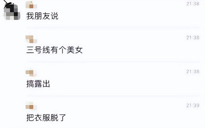 以及此前的“地铁女生脱衣事件”,一个网友在某个群里面说地铁三号线上有一位美女搞露出,群友纷纷都是求照片,并表示对乘车男性的羡慕,以及对这位女性的恶意调侃。