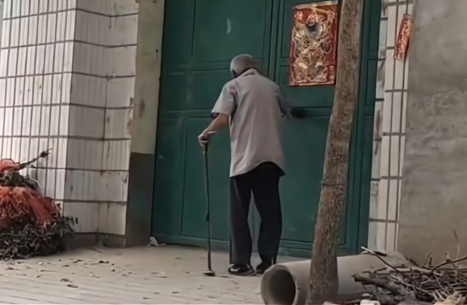 某地一个老人,在儿子家大门口坐了好久,只为吃一顿饭。可是等了将近一个小时,也没人开门,老人只能无奈地站起来走了。