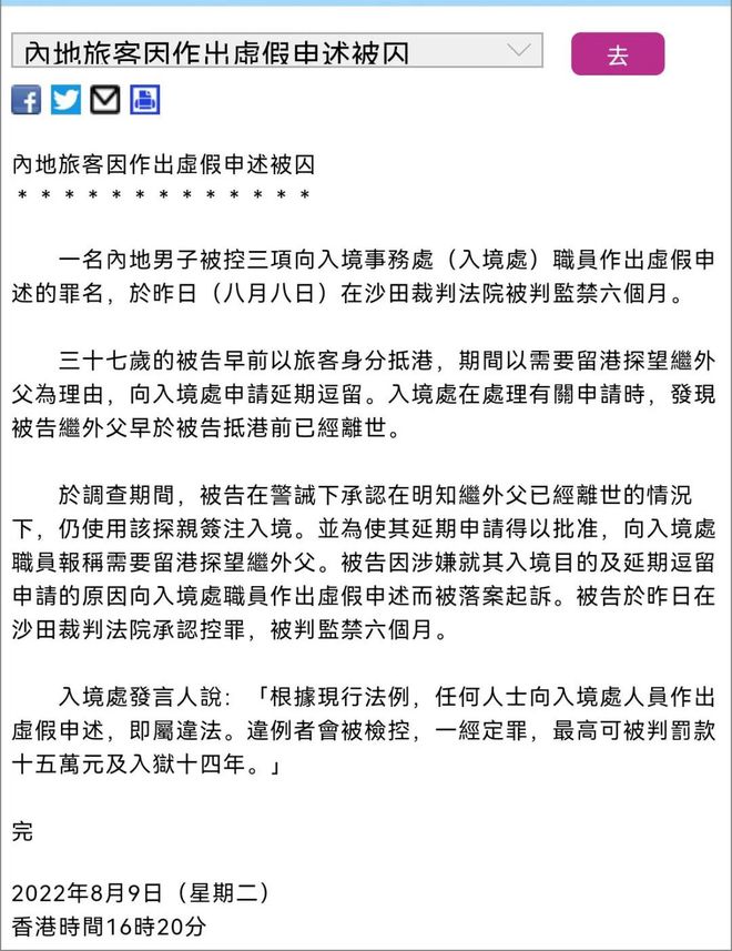 像这两位是持护照假过境香港,实际是在港旅游,随后被控向入境处人员作虚假申述,最后分别被判监禁3个月及4个月。