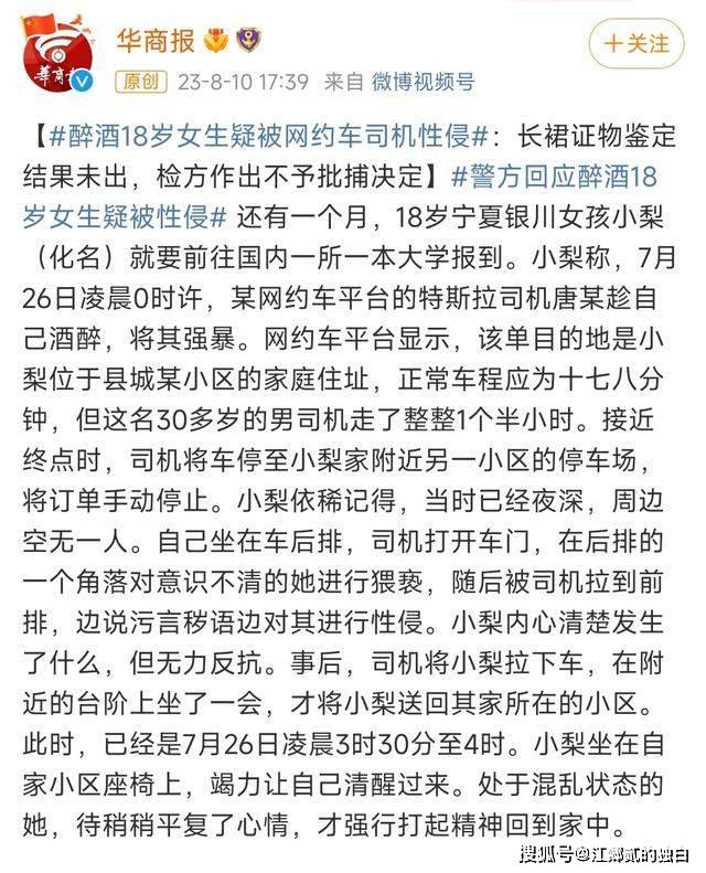 原标题:宁夏:18岁女生醉酒打车回家,遭网约车司机性侵,事件有了新进展