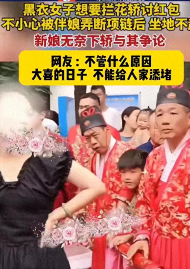 对于黑衣女子要求转账的说法,新郎的妹妹当然不同意,现场有那么多人围观,如果给黑衣女人转账了,那么接下来再有要红包的人,她该如何是好,一旦开了这个口子,要红包的人只会越来越多,到时候大家都围着迎亲车队不走,那么肯定会耽误良辰吉时。
