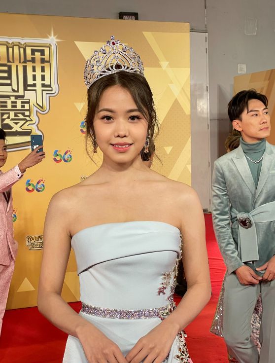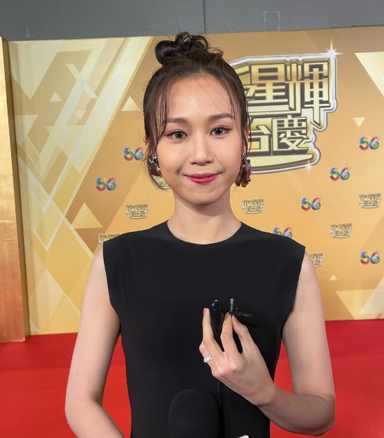 问到港姐合照经常不见她,是否不和?她解释因排练项目不同,使用的化妆间也不同,强调大家感情很好,刚刚见到王敏慈都有打招呼。