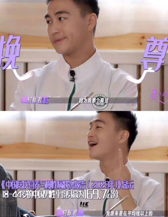 当被问到是否会在意身高时,吴千语表示何猷君一直都很自信,同时何猷君也极力挽尊到,他看过中国男性的平均身高数据,自己是在平均线以上的,并且乐呵呵地表示挺好的。