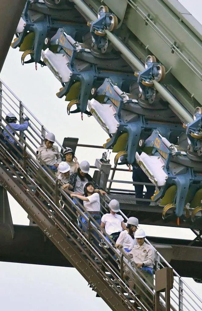 下面就是大海,USJ过山车紧急停止,32名乘客倒挂40米高空中