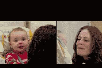 孩子马上感受到了不安,于是开始想方设法吸引妈妈的注意力。他用手指向妈妈,把身子靠向妈妈,但妈妈仍然面无表情、一言不发。