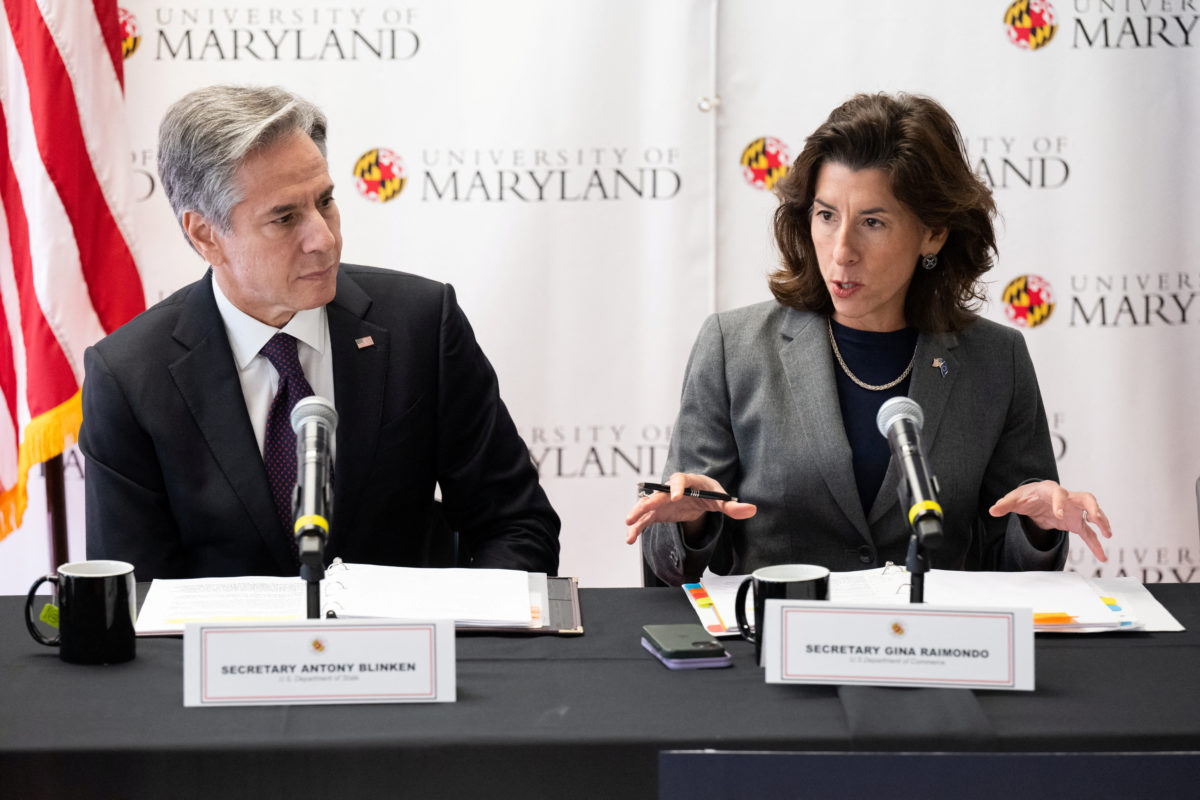 资料图:美国国务卿布林肯和美国商务部长雷蒙多