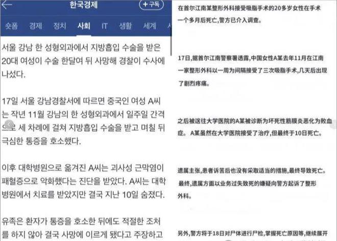 1.中国女孩去韩国整形,两周内做三次抽脂手术后身亡!因签证时间太紧迫?