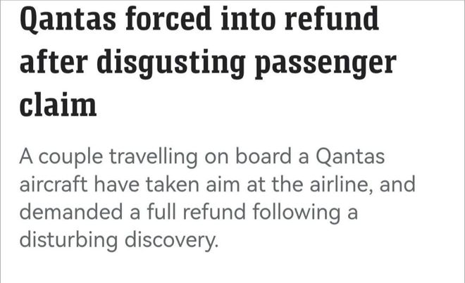 “我们希望至少退还这段航班的费用,”这对夫妇回复航司,并补充说他们不打算再次乘坐澳航航班。