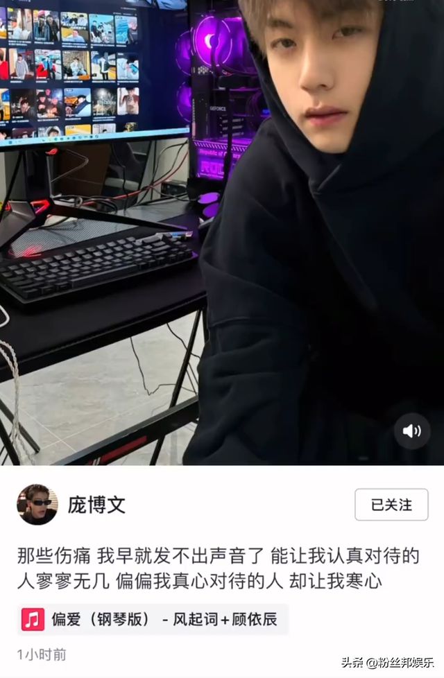 而且前不久“周周小可爱”和庞博文发了一模一样的文案,被网友发现后,庞博文立马就把作品给隐藏。