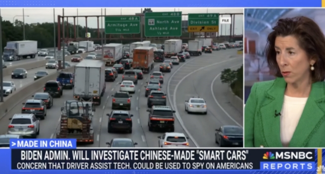 2月29日,美国总统拜登宣布将对中国制造的汽车展开调查。在这一背景下,美国微软-全国广播公司(MSNBC)3月1日发布美国商务部长雷蒙多接受该媒体采访视频,雷蒙多极力渲染“中国威胁”,雷蒙多在采访中声称,中国汽车如同“装了轮子的苹果手机”,可以记录大量信息。“想象一下,假如有数百万辆中国汽车在美国的道路上行驶,每天每分钟都在收集数百万美国人的数据,然后把这些数据传回北京……”