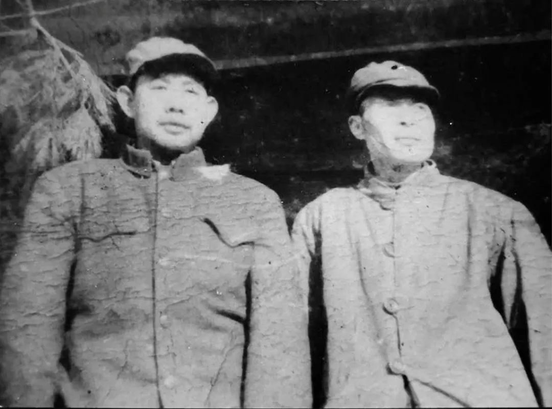 图为黄朝天(图右)和战友的合影,摄于1950年12月的长津湖战役。图片为黄朝天的儿子黄建文先生提供。