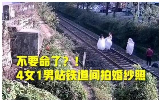 原标题:【惊呆】4女子铁轨上拍婚纱照被罚 背后原因让人惊呆了