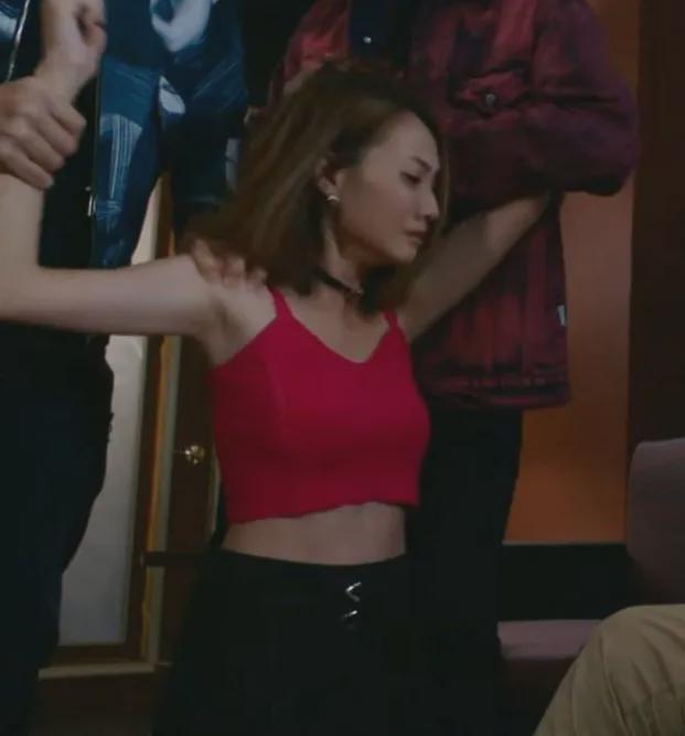 在《隐形战队》中,阮嘉敏演夜场小姐,其中一幕以红色小背心造型上阵,成功引起网民关注。