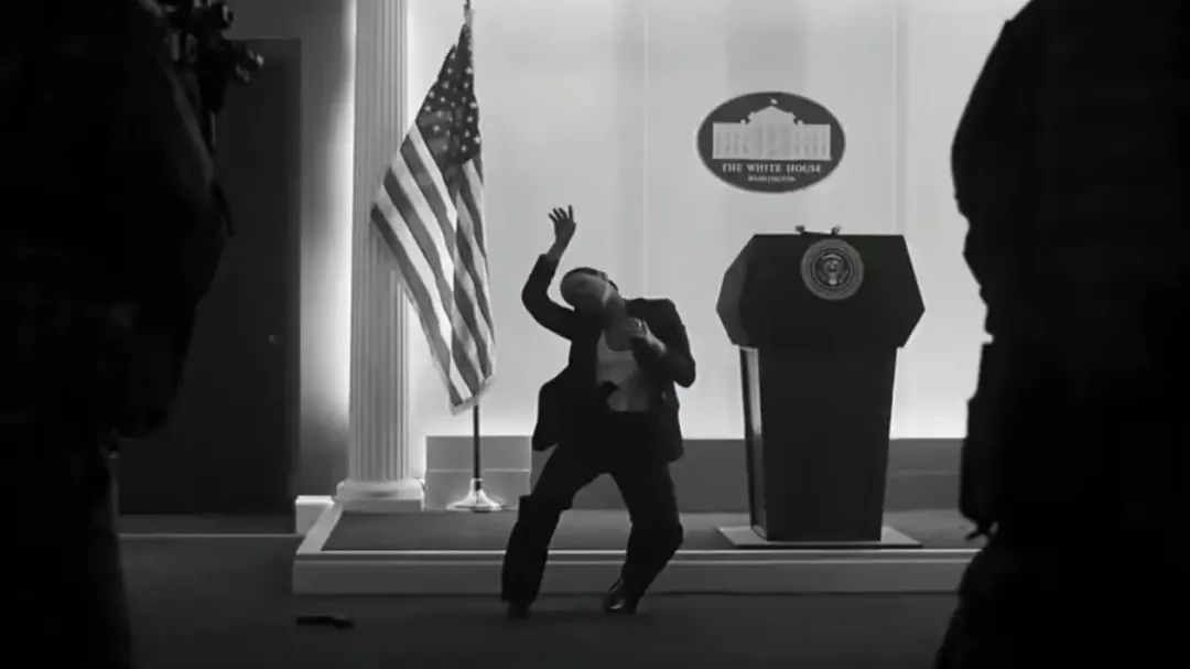最终,政府军战败,“西方联军”树起双星旗,打进华盛顿,杀进白宫,最后还在舍命保护总统的,是一位特勤局的黑人女特工,她还试图和叛军谈判,要求把总统送到“中立第三国”去,结果被一梭子射杀。