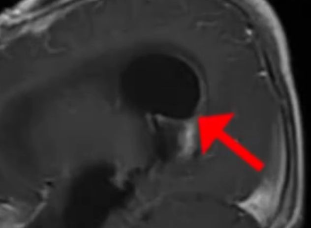 医生随即在这段时间,用核磁给航航检查了脑部。他们在结果中清晰地看到男孩脑部有一个硕大的包块。众人都非常疑惑一岁多的孩子大脑之中怎么会产生这种病变呢?但毋庸置疑的是,正是这包块中的积液让男孩身体不见好转。