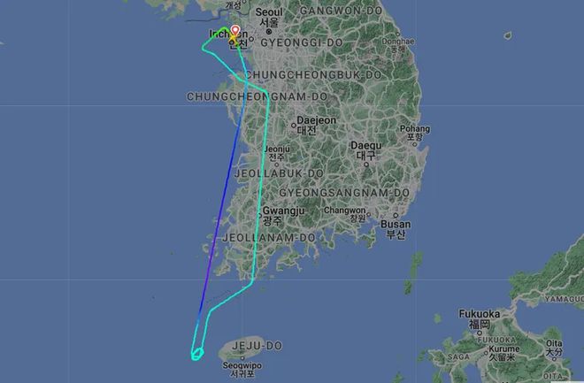 透过航线追踪公司Flightradar24资讯可见,事故客机从南韩仁川机场起飞后一路直直南下,没想到行经济州岛西侧时却突然盘旋于高空、并360°折返北上,直到晚间返航降落后,大韩航空也紧急为125名乘客提供住宿,并预计于今(23)日上午启动替代航班,比原订班机起飞延误了19小时。
