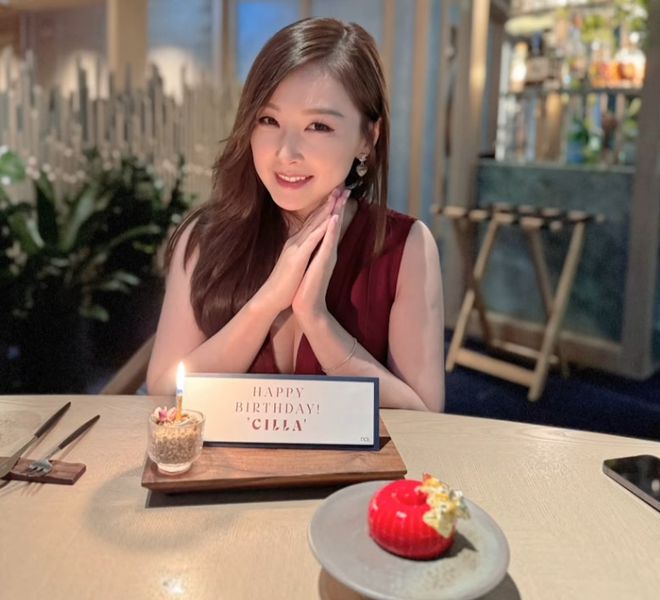 从近照中可见乐瞳的样貌一如以 往的童颜,少女感 十足。 她与朋友庆生时穿上红色Deep V晚装,丰满上围表露无遗。