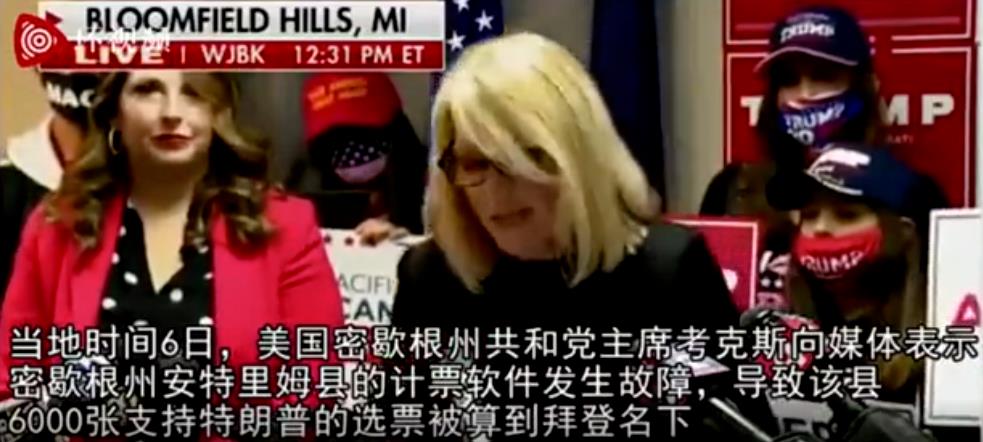 根据福克斯新闻,“在(密歇根)安特里姆县,原本应该投给共和党的选票被统计到了民主党头上,这导致了6000张选票转而反对我们的候选人。”