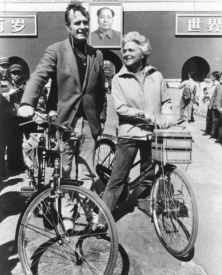 在中美还没正式建交的时候,老布什担任美国驻华联络处主任,他经常和妻子骑着自行车在北京走街串巷,四处拜访工厂和农村,跟中国百姓接触,打“亲民”牌。