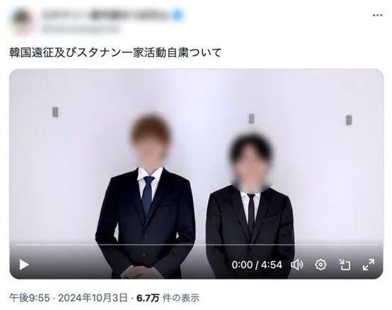 此事经韩国媒体报导后,直批「史塔纳一家」发布的照片未经女方同意偷拍,已严重侵犯隐私权,也受到日本媒体关注。眼看事件差点引爆一场日韩两国的另类冲突战,眼见事态严重,「史塔纳一家」赶紧在平台X(原推特)上发布了一个道歉影片,