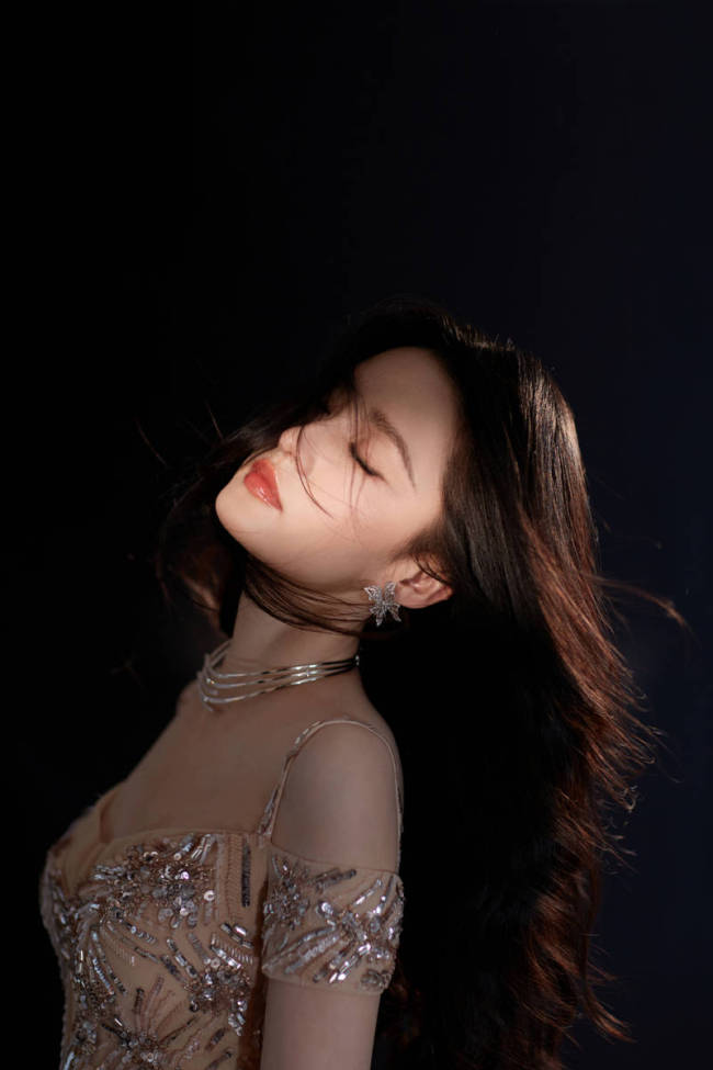 李沁穿碎钻纱裙璀璨夺目 光影间回眸一眼万年