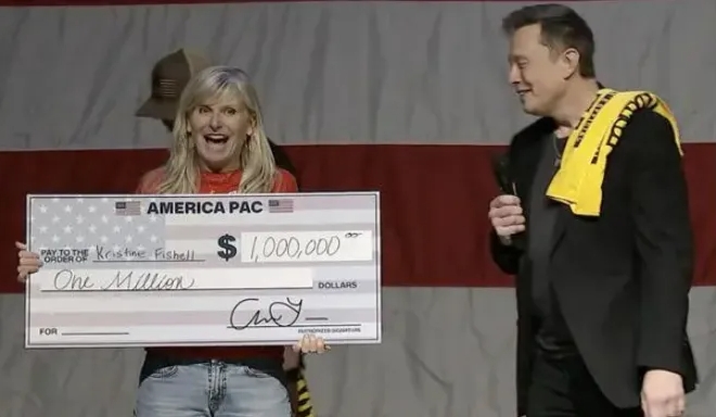 10月19日,马斯克宣布,他将每天随机向一名签署“美国政治行动委员会”(America PAC)请愿书的宾夕法尼亚州选民发放100万美元,直到大选日(11月5日)。