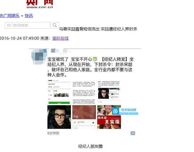信息来源:央广网——马蓉宋喆露骨短信流出 宋喆遭经纪人界封杀