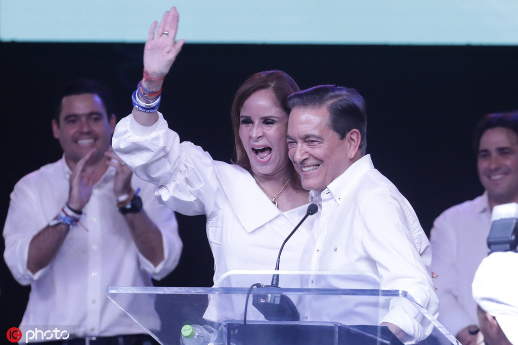 5月6日,巴拿马首都,巴拿马最大反对党民主革命党候选人科蒂佐偕夫人出席集会,与支持者共同庆祝在大选中胜出。图自IC Photo