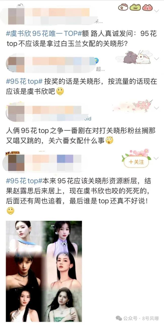 最近两人对打,也被外界看作是“95TOP”之争,同时在播剧的关晓彤好像已经被踢出了这个行列,压根没被加入到这次的“比拼”讨论中。如今,关晓彤除了奖项,似乎已经没有别的优势了。