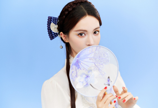 金晨手拿摇扇国风美人 新中式穿搭古典雅致