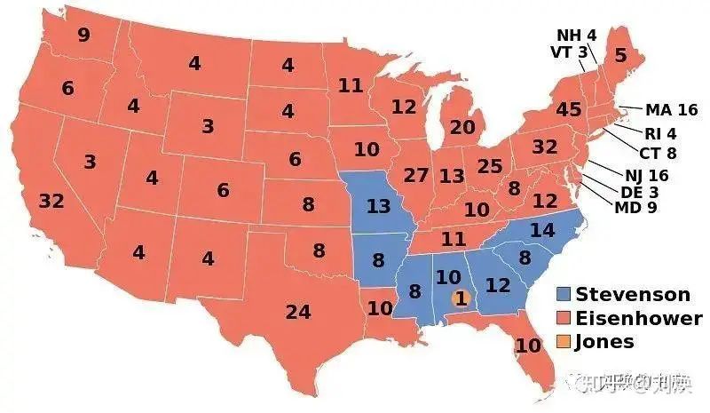 1956年,艾森豪威尔以457票的成绩碾压了史蒂文森的73票;