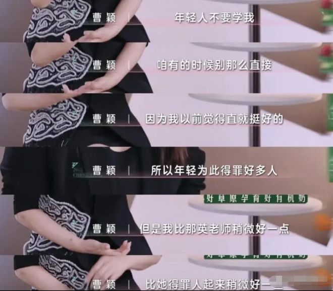 曹颖后知后觉才意识到自己得罪了人,后采的时候找补说自己只是心直口快,还让现在的年轻观众不要学她,说自己和那英是同一类人。