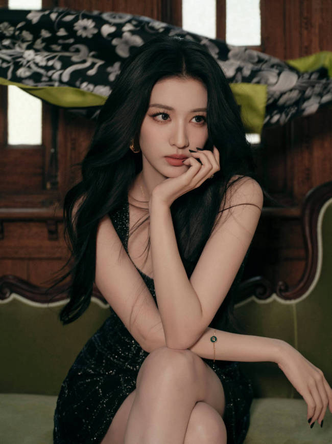 王楚然身穿小黑裙时尚优雅 脚踩高跟鞋秀修长美腿